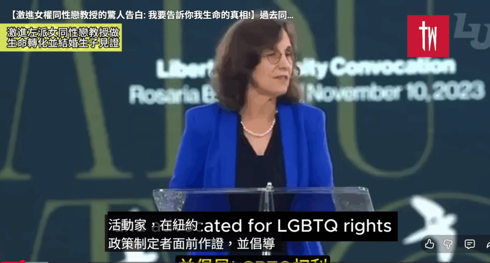 最新消息【激進女權同性戀教授的驚人告白: 我要告訴你我生命的真相!】 by taiwan twgra31 10 月, 202531 10 月, 202509 Share0 【激進女權同性戀教授的驚人告白: 我要告訴你我生命的真相!】 過去同婚並教授LGBTQ,如今卻不再一樣 一位激進女權同性戀教授的驚人告白。 內容記錄了這位名叫 Rosaria 的教授 從擁護同性戀權益、倡導 LGBTQ+、並教授相關理論的學者,轉變為 皈依耶穌基督信仰 的過程。 她詳細描述了自己曾是一名女同性戀者和同志權益活躍份子,並解釋了她如何透過閱讀《聖經》、與基督徒鄰居辯論,以及最終接受基督教的罪與救贖教義,從而改變了她對自己性傾向的看法。 故事強調了她在接受信仰後,開始視同性戀為一種需要悔改的罪,最終與一位男性結婚並成為一名牧師的妻子、母親與祖母。 本文摘自:【激進女權同性戀教授的驚人告白: 我要告訴你我生命的真相!】過去同婚並教授LGBTQ,如今卻不再一樣